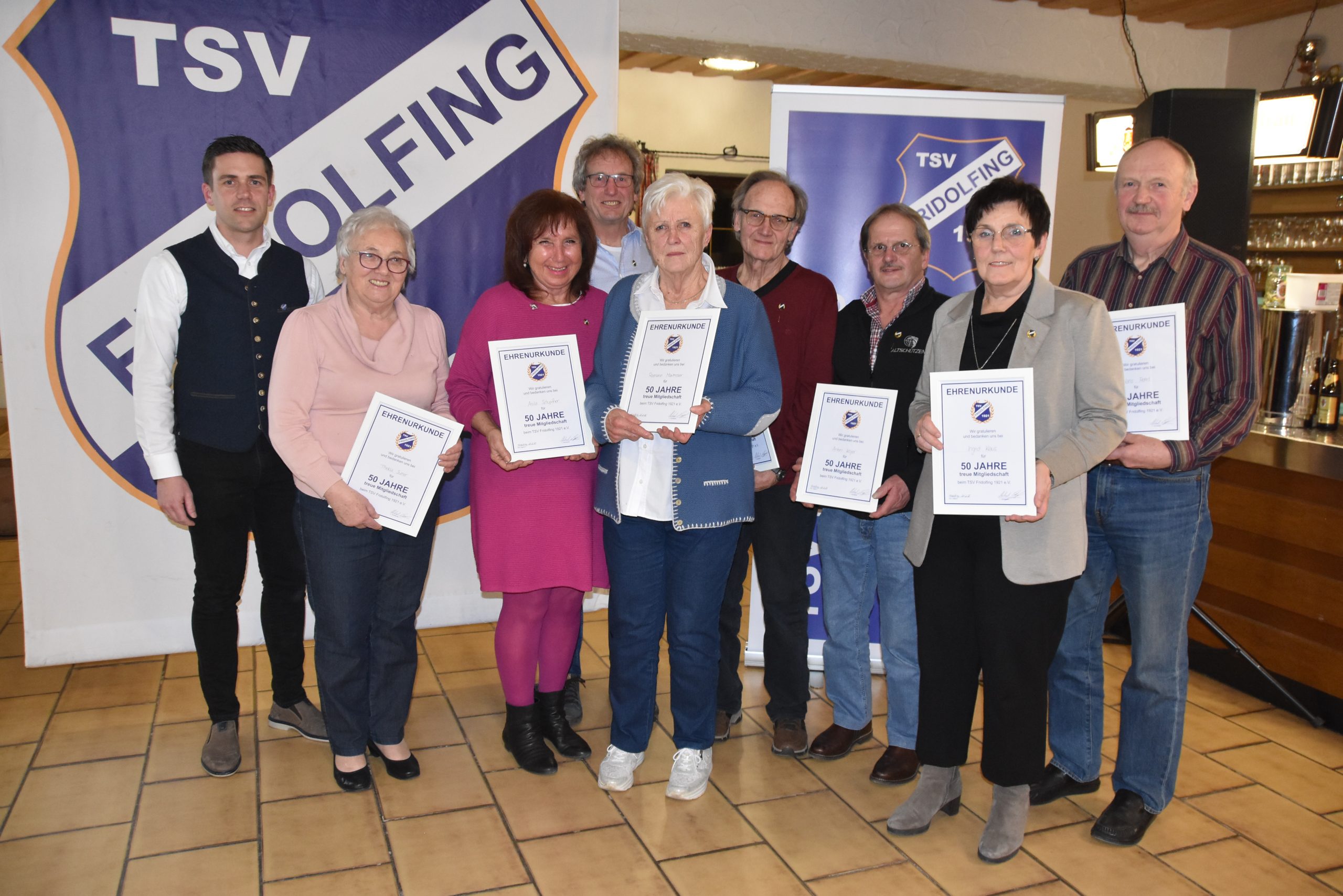 Für 50 Jahre: Willi Aigner, Ingrid Kraus, Josef Krautenbacher, Anton Krojer, Rosmarie Maxlmoser, Hans Rehrl, Maria Schild, Anita Schupfner, Stilla Schupfner, Thekla Surrer, Josef Trostner